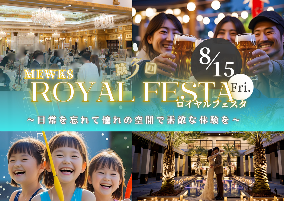 結婚式場「PLEIAS OTA」にて、2025年8月15日(金)に「第3回MEWKSロイヤルフェスタ」を開催いたします。入場無料、雨天決行。