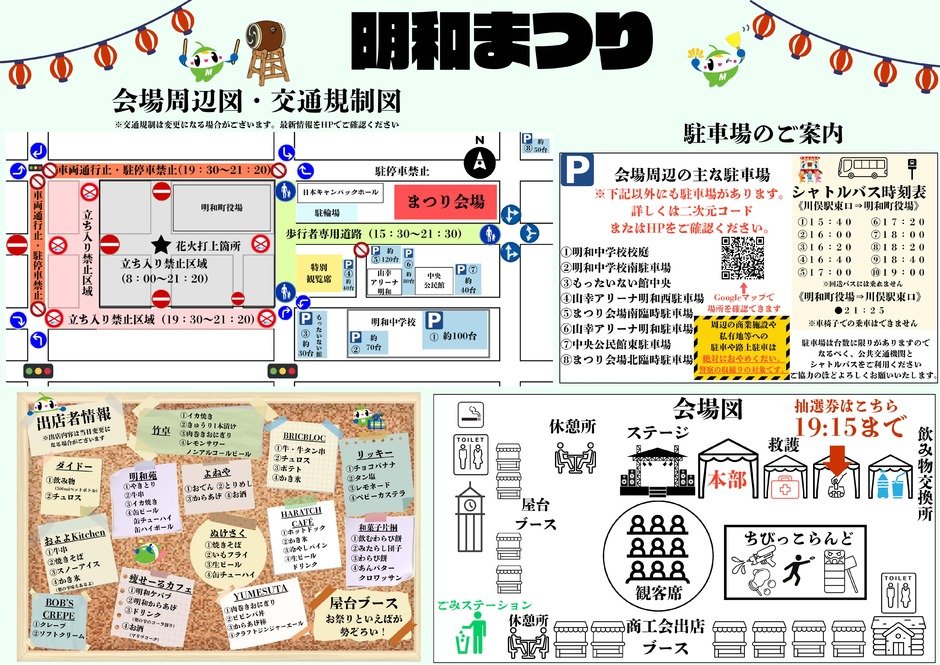 明和まつりの臨時駐車場は下記のとおりです。