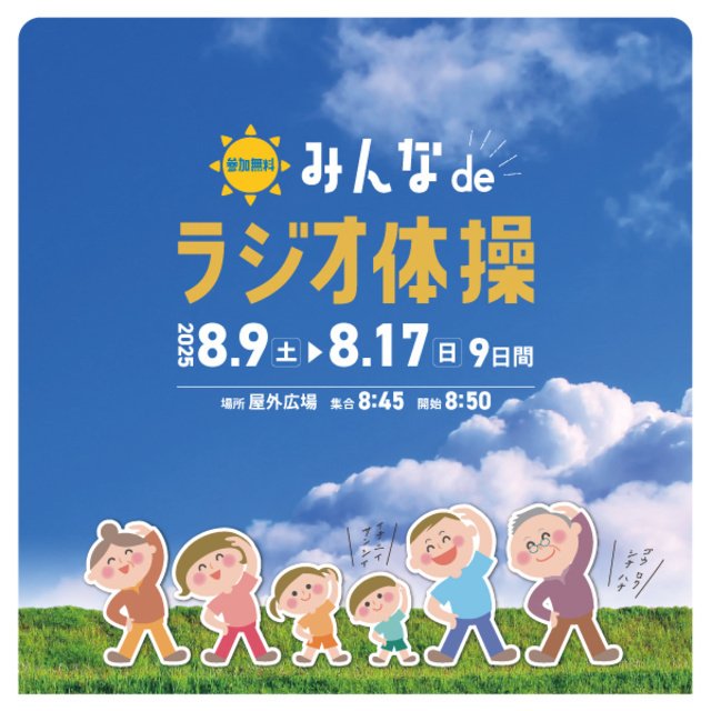 この夏、道の駅まえばし赤城で、朝のラジオ体操を開催。13 種類の運動から構成されているラジオ体操で 一日の始まりに全身を動かしてみてはいかが? こどもから大人までdaredemoも大歓迎! 全日程参加した人には、プレゼントあり。