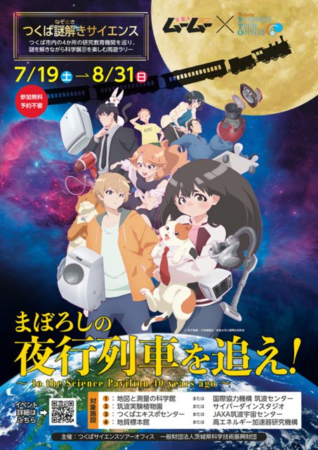 TVアニメ『宇宙人ムームー』とコラボしたつくば科学万博をテーマにした謎解きサイエンスを開催!市内にある研究教育機関8施設から希望の4施設を選んで見学&謎解きを楽しもう!詳細はHPへ。 ※サイエンスツアーバスを利用して参加も可能