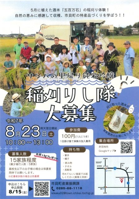 | お問い合わせ | 0285-68-1118(市貝町産業振興課) |