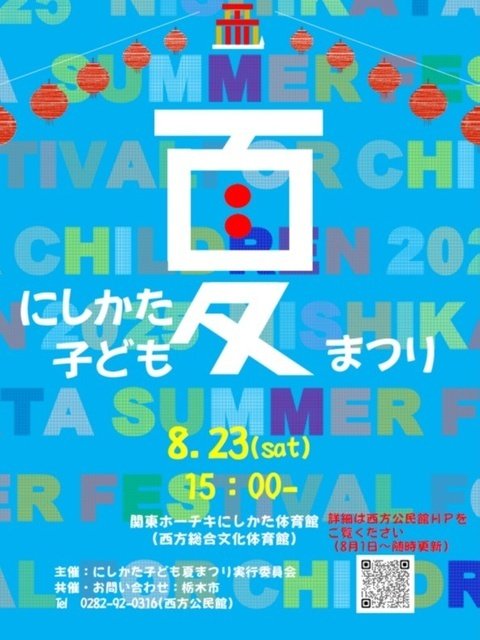 子どもたちと地域の人たちが、楽しくふれあえる交流の機会として、また、西方の子どもたちへの、心に残る夏の思い出をプレゼントとして、子ども夏まつりを開催。1日中楽しめるお祭りで、西方の夏を楽しもう!