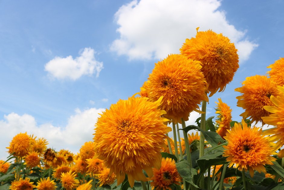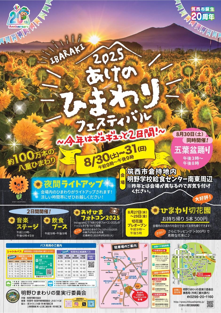 日本百名山である筑波山をバックに、「八重ひまわり」が約100万本咲き誇る『あけのひまわりフェスティバル』。