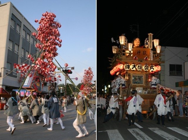 開催日時備考: 9月1日例祭:10時~11時30分、提灯まち:16時30分~20時、神幸祭20時~21時。9月2日行宮祭:10時~10時半、還幸祭:15時~16時、山車祭:両日10時~22時。