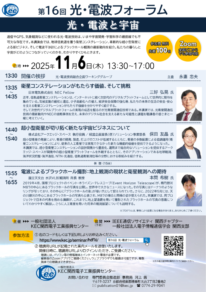 <第16回 光・電波フォーラム(11月6日開催)のご案内>