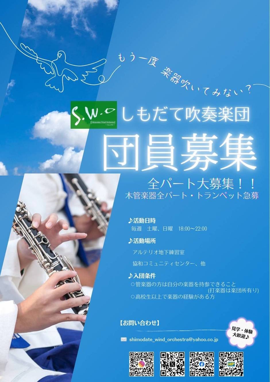 | お問い合わせ | しもだて吹奏楽団 shimodate_wind_orchestra@yahoo.co.jp |
