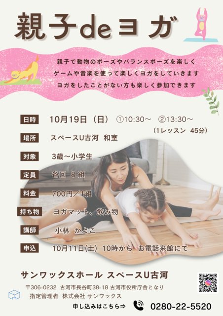 | お問い合わせ | 0280-22-5520(スペースU古河) |