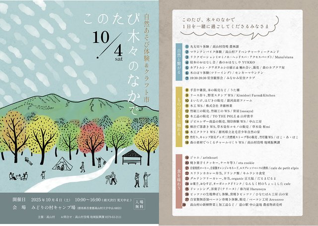自然あそび体験&クラフト市 このたび木々のなかで
