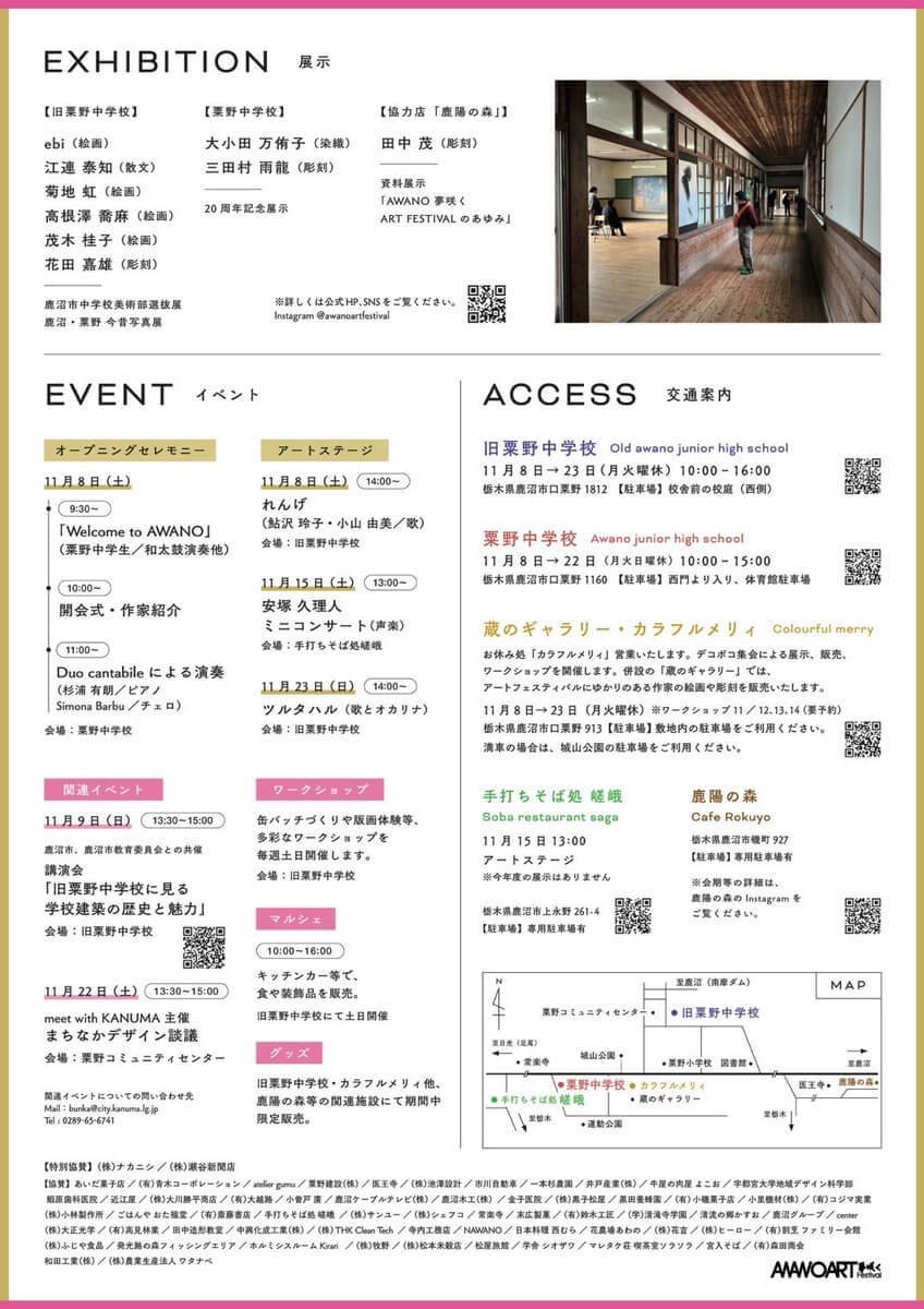 栃木県鹿沼市立粟野中学校を中心に開催されるアートの祭典です。