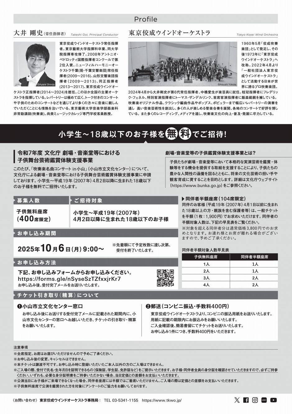 詳細は東京佼成ウインドオーケストラHPもしくは小山市立文化センターHPをご覧ください。