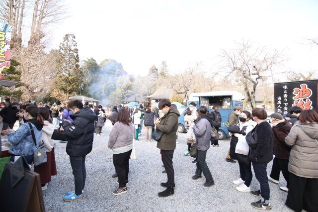 花まつりはお釈迦様の誕生日。お釈迦様の像に甘茶をかけてお祝いし、無病息災や子どもの健やかな成長を願う。甘茶の無料ご接待あり。先着100名に花まつりサイダーをプレゼント。花まつり限定御朱印や限定桜守の授与も行う。ワークショップでは、腕輪念珠作りを開催。また、境内ではえんまんマルシェも同時開催。マルシェには15店舗が出店。50席以上のイートインスペースも設置し、境内の桜を眺めつつ飲食が可能。