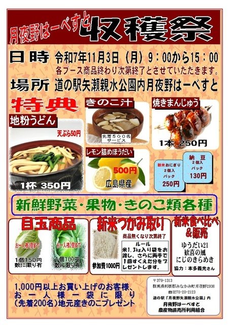 開催場所: 道の駅矢瀬親水公園内月夜野ハーベスト