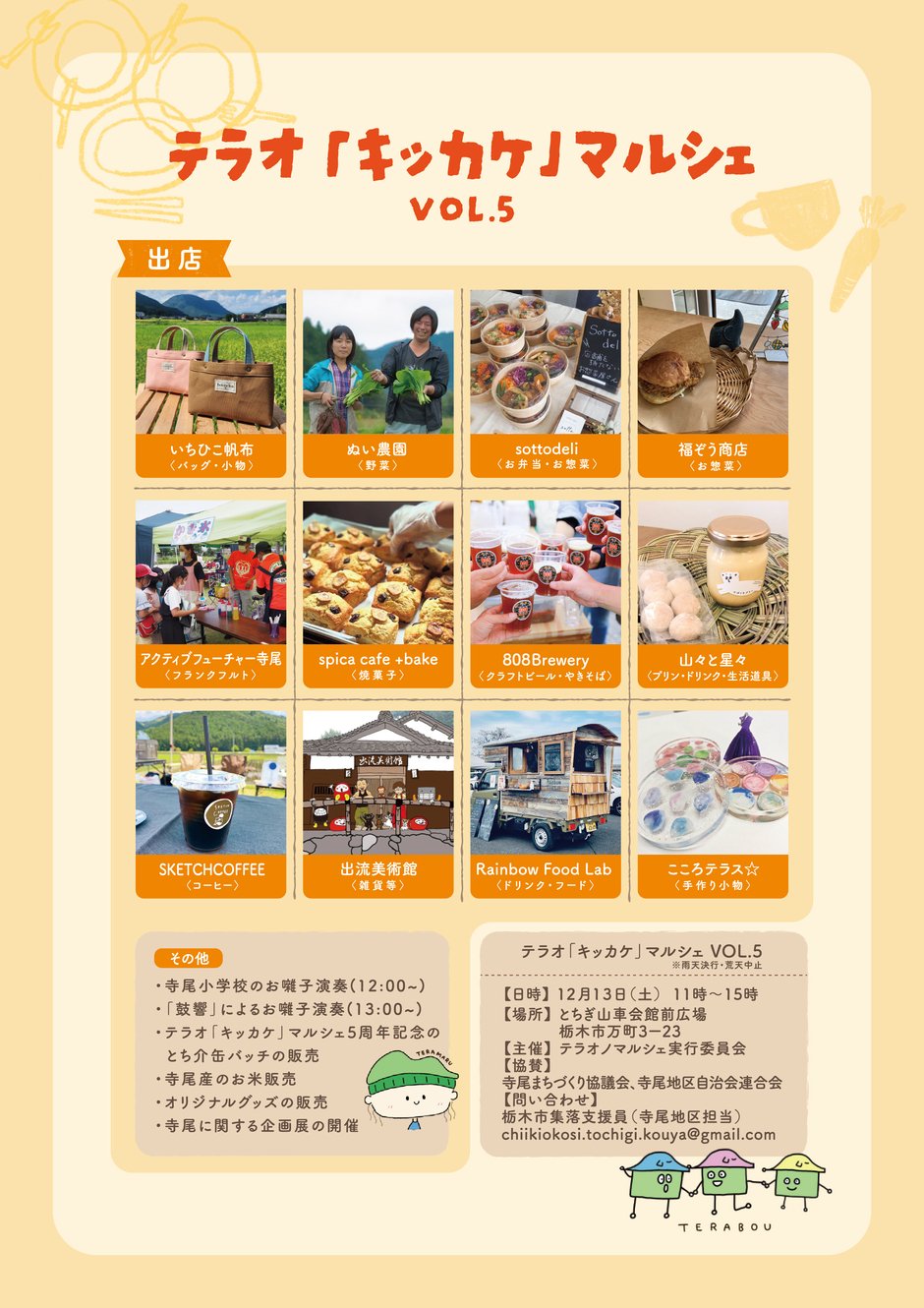 「寺尾を知る!寺尾に関わる!」そのキッカケづくりを目的としたマルシェです。好評につき5回目の開催。今年も栃木市寺尾地区のお店や寺尾にゆかりのあるお店が集まります。まちなかでの開催ですので、普段は寺尾に訪れたことない方にもおすすめのイベントです。
