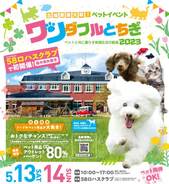 北関東最大級のペットイベント「ワンダフルとちぎ2023」を開催。ペット用品アウトレットバーゲンやショーなど、様々な催しものが行われる。ペット同伴可。