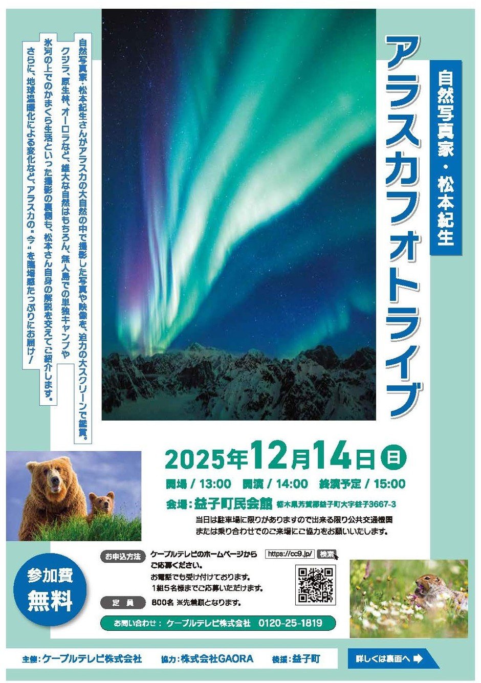 自然写真家 松本紀生『アラスカフォトライブ』