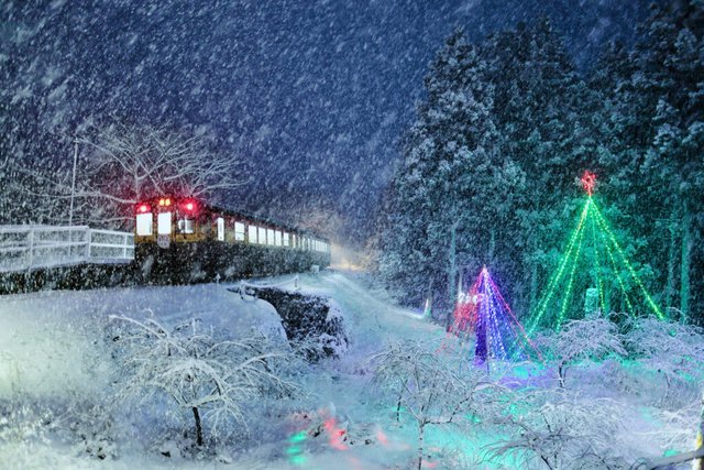 乗ってみたいローカル線として人気のわたらせ渓谷鐵道。駅舎や待合室などが趣向を凝らしたイルミネーションで彩られる。幻想的に浮かび上がる情景を楽しめる列車の旅に出かけてみては。わたらせ渓谷鐵道全区間乗り降り自由の一日フリーきっぷを購入し、「イルミネーション号」に乗車しながら楽しんだり、往復運賃とお弁当がセットのお得な旅行商品「トロッコわっしー号で行くイルミネーションの旅(要予約、有料)」もおすすめ。