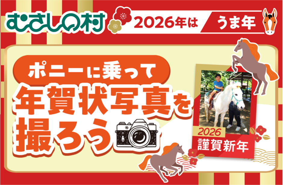 緑の中のファミリーランドむさしの村(所在地:埼玉県加須市)は、ふれあい牧場にて、2025年12月13日(土)・14日(日)の2日間に「ポニーに乗って年賀状写真を撮ろう!」を開催いたします。