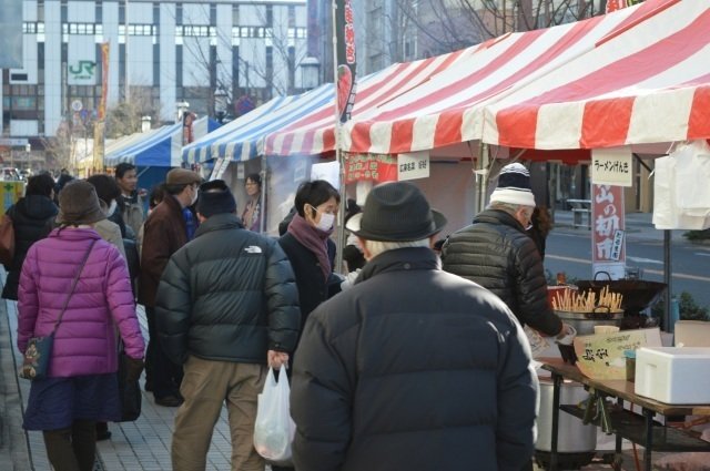 小山市の新春イベント「小山の初市」が成人の日に開催! 会場では、縁起物の“だるま”販売をはじめ、お囃子の演奏、獅子舞などお正月らしさ満点! 小山の美味しいものや、もちつき大会も!