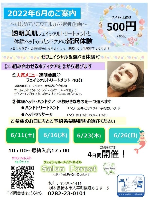 たくさんの方に気軽に美容サービスを受けていただけるメニューを取り揃えております。まずはお試しにイベントにお越しください。