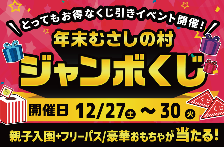 緑の中のファミリーランドむさしの村(所在地:埼玉県加須市)は、2025年12月27日(土)~30日(火)の4日間に「年末むさしの村ジャンボくじ」を開催いたします。