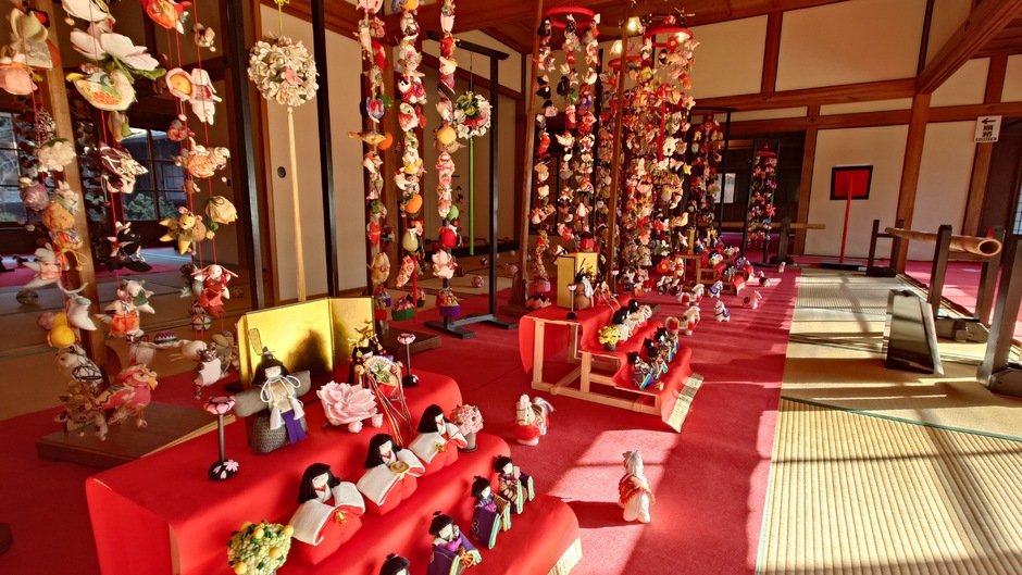 邸内の会場に展示されたつるし雛をこの機会にぜひご覧ください。