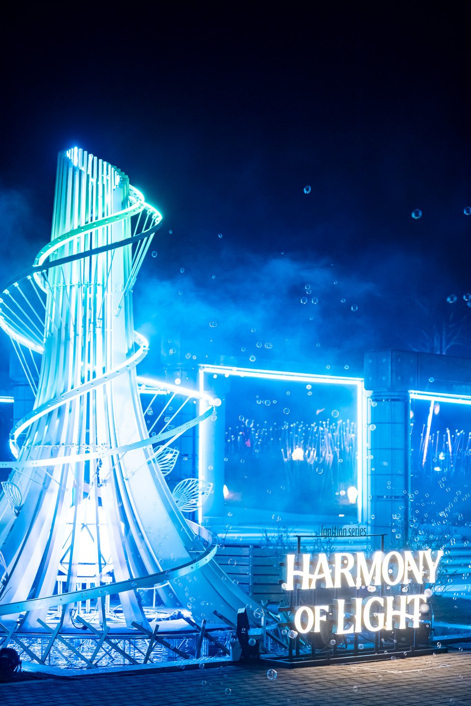 夜間の没入体験型イベント『HARMONY OF LIGHT』では、週末限定で「ナイトバブルタイム」をスタート。