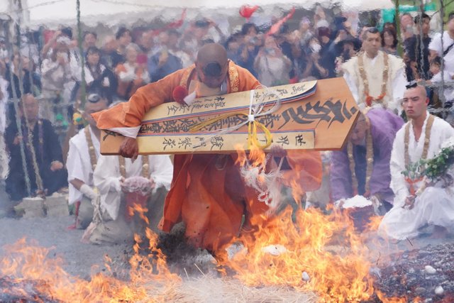 熱気を直接感じる圧巻の火渡り