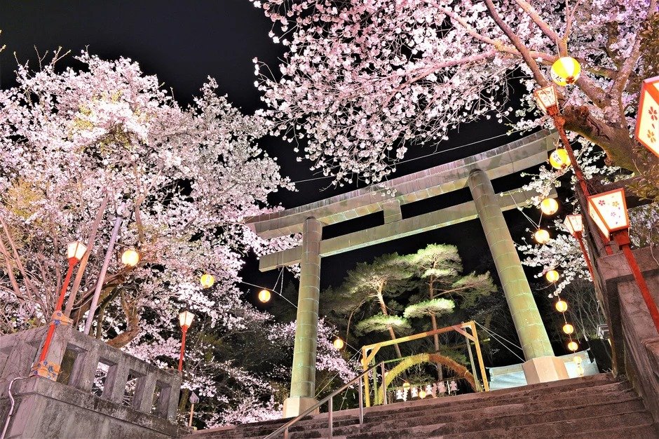 境内には多くのソメイヨシノがあり、例年4月中旬に見ごろを迎える。例年夜にはライトアップも実施され、鬼怒川温泉での幻想的な夜桜を楽しむこともできる。会場の神社境内を埋め尽くす桜たちは圧巻の光景。昼とはまた異なる鬼怒川温泉の夜桜散策を楽しんでみてはいかが。