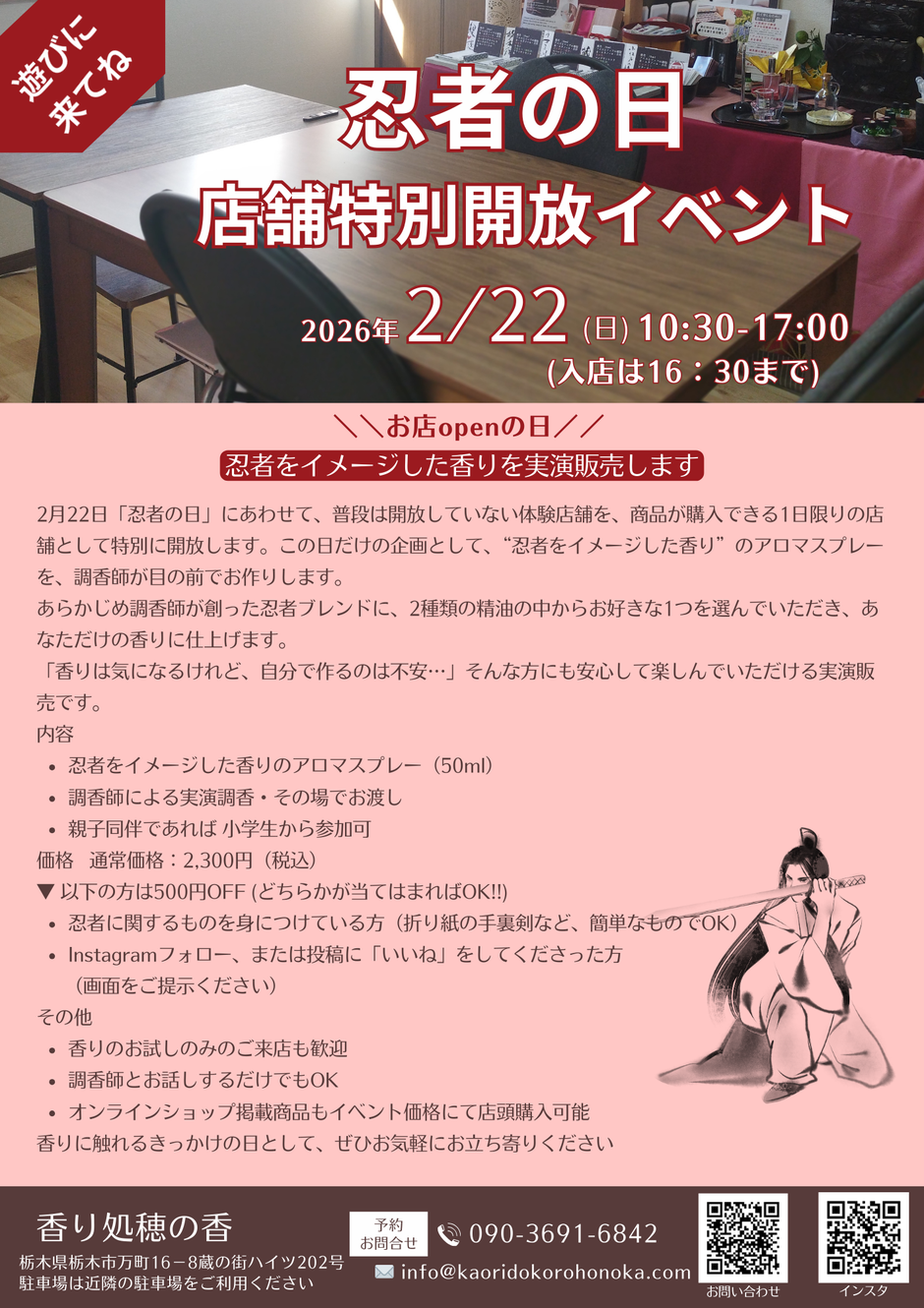 香り処穂の香では、2月22日「忍者の日」にあわせ、