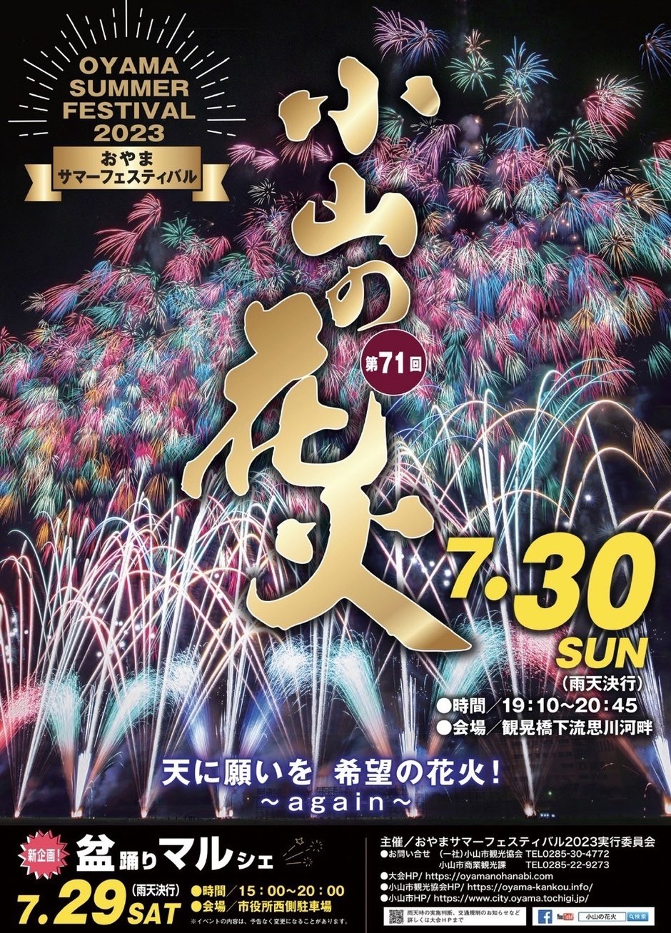 | お問い合わせ | 0285-30-4772(おやまサマーフェスティバル2023実行委員会(小山市観光協会)) |