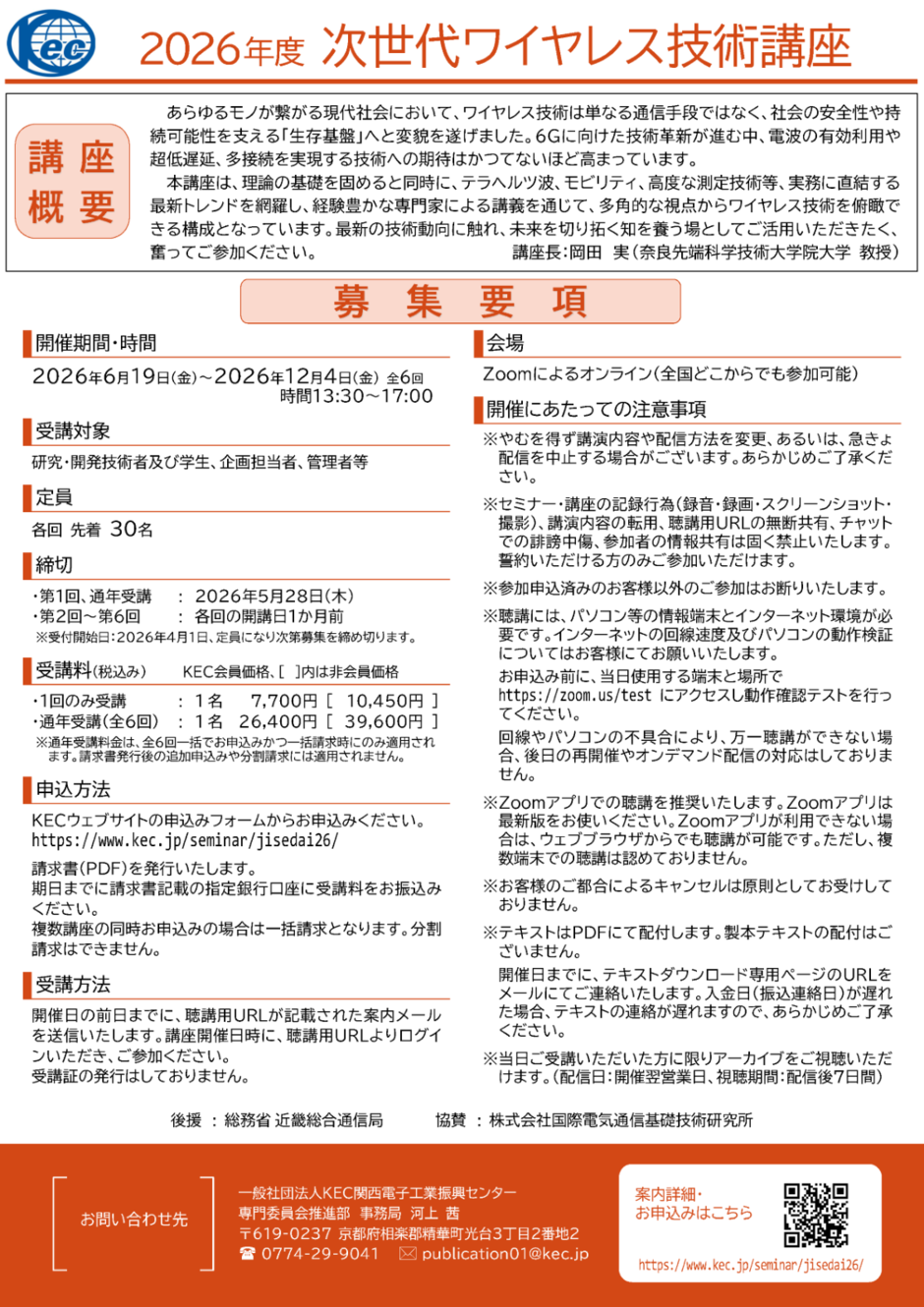 <2026年度 次世代ワイヤレス技術講座 開講のご案内(第1回含む)>