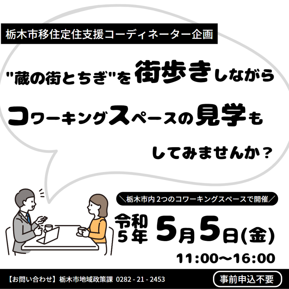 "蔵の街とちぎ"を街歩きしながらコワーキングスペースの見学もしてみませんか?
