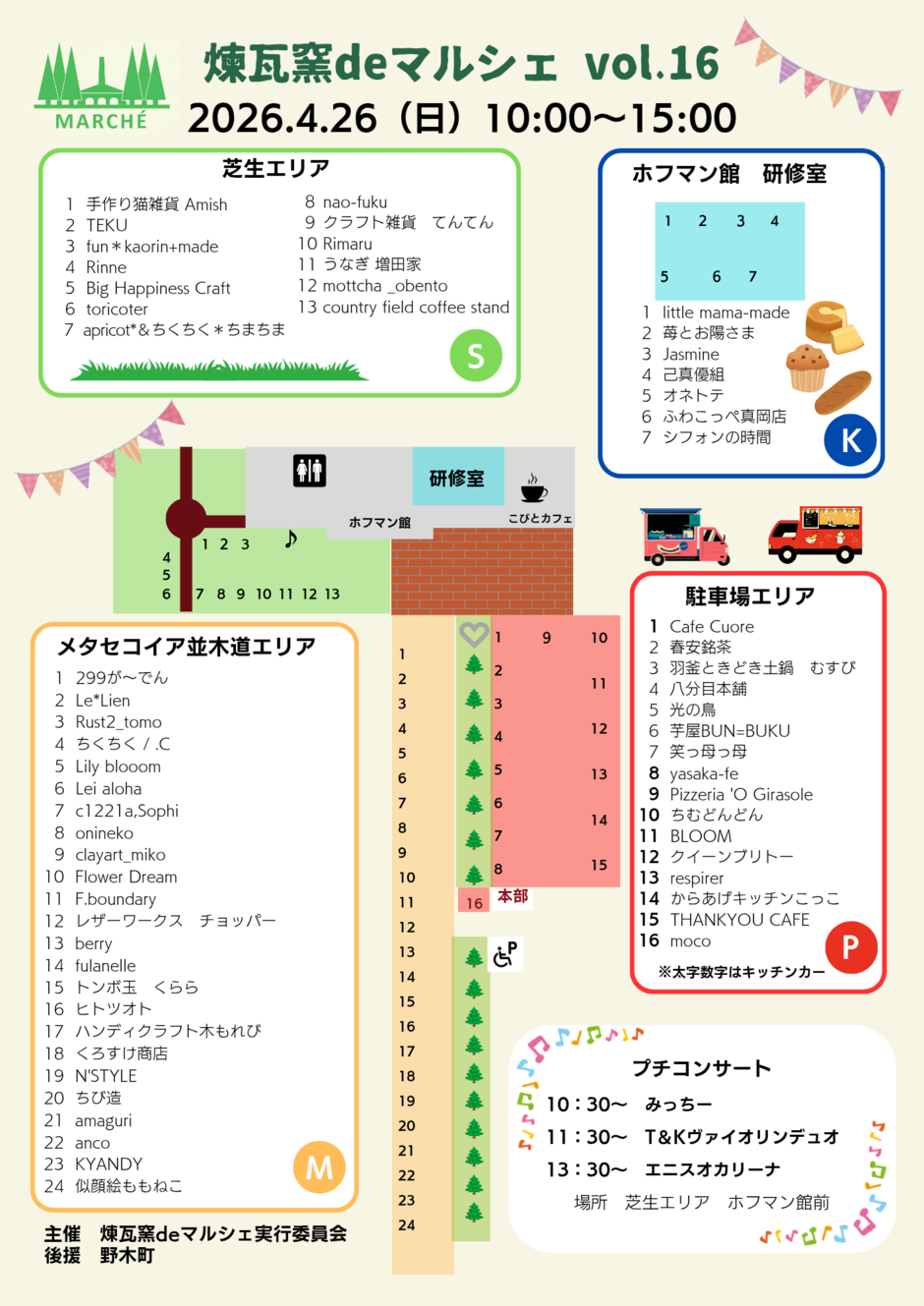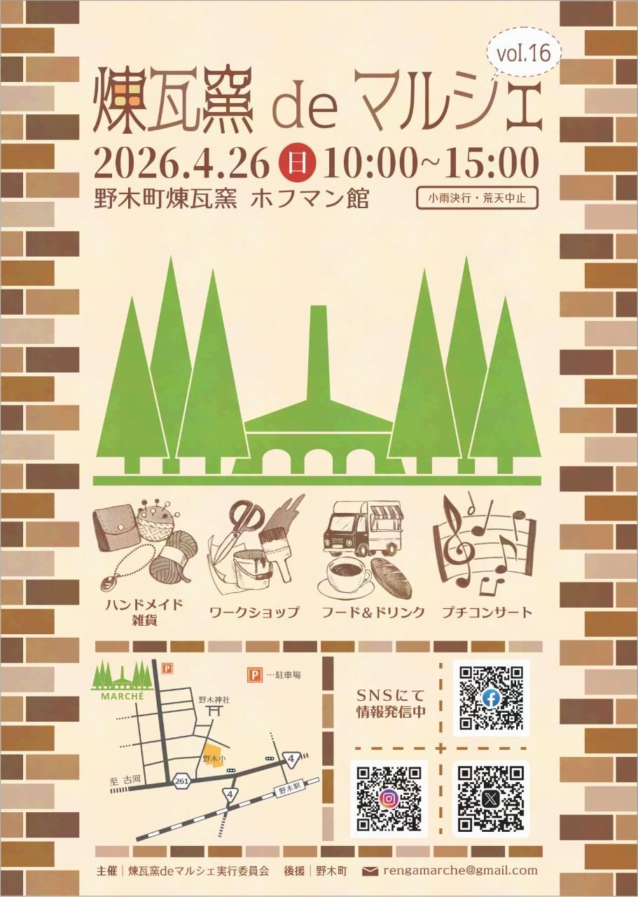 | お問い合わせ | 煉瓦窯deマルシェ実行委員会 rengamarche@gmail.com |