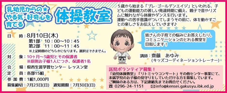 乳幼児からの★やる気・好奇心を育てる体操教室 ※募集締切…7/23(日) 17:00まで