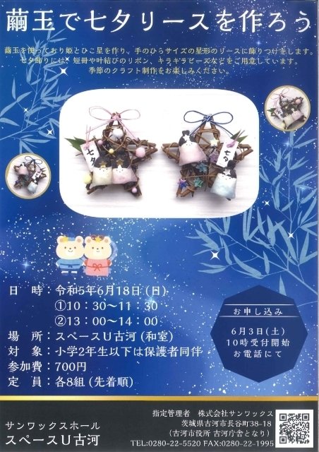 | お問い合わせ | サンワックスホール スペースU古河 TEL:0280-22-5520 |