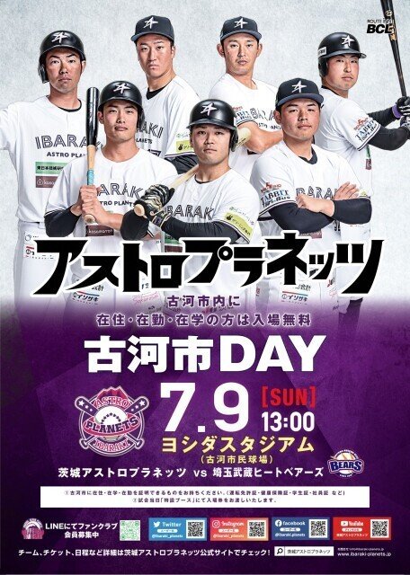 茨城県に本拠地を置くプロ野球チーム「茨城アストロプラネッツ」が古河市でBCリーグの公式戦を開催する。