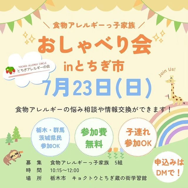 | 募集人数 | 食物アレルギーっ子家族 5組 ※申込みはDMで! |