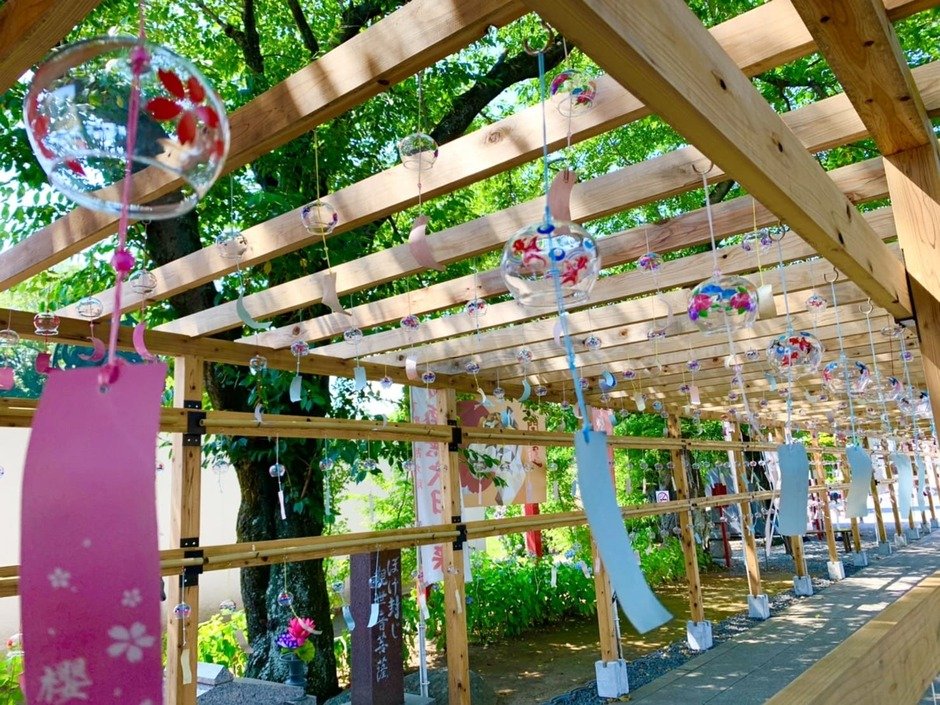 仁王門から本堂まで風鈴回廊が設置され、約1000個の風鈴が風に揺れています。