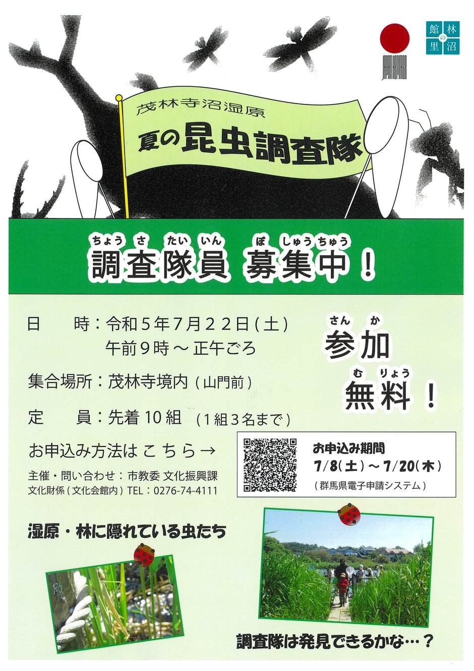 7/22(土)、茂林寺沼湿原にて昆虫調査隊結成!