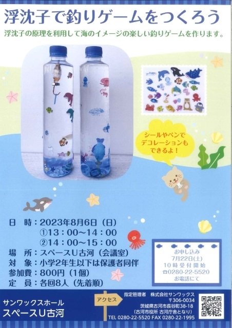 浮沈子の原理を利用して海のイメージの楽しい釣りゲームを作る。