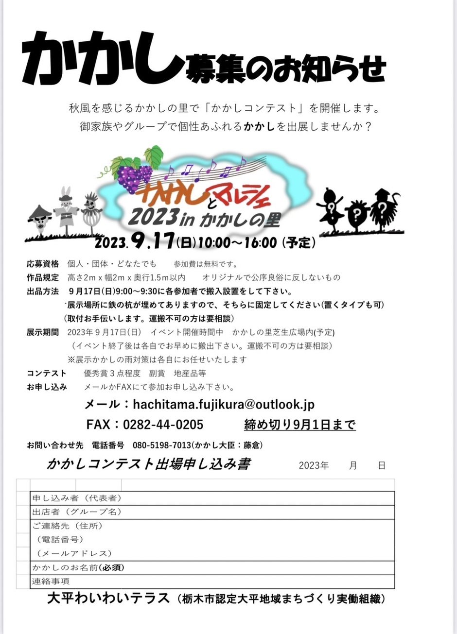 出品方法:9月17日(日)イベント開催時間中 かかしの里芝生広場内(予定)