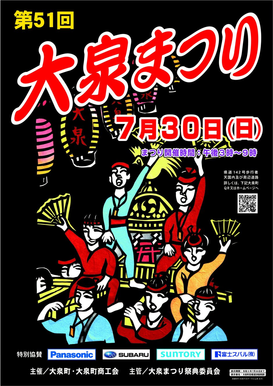 「住んでみたい、住み続けたいまち、おおいずみ」をテーマに住民総参加、手作りの祭りとして、町民の皆さんに親しまれている大泉まつりが開催されます。