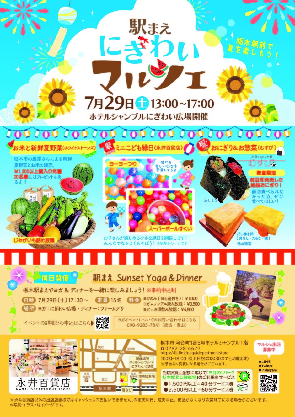 栃木駅まえでヨガ&ディナーを一緒に楽しみましょう!※事前申込制