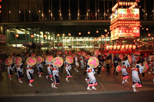 大やぐらを囲んで、下館音頭や笠抜き踊りの輪が広がります。