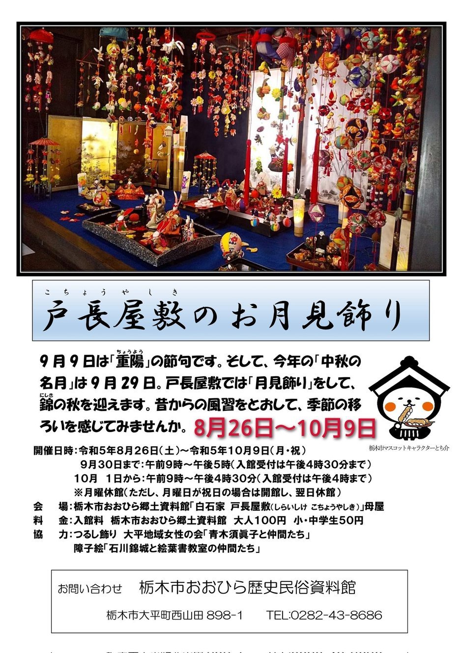 戸長屋敷では、9月9日の重陽の節句や、9月29日の中秋の名月などの行事に因んだ飾りつけをいたします。