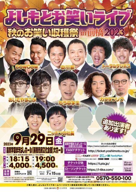 群馬 よしもとお笑いライブ~秋のお笑い収穫祭~in前橋2023
