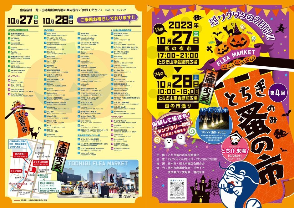 | お問い合わせ | 主催:とちぎ蚤の市実行委員会 主管:FROGS GARDEN・TOCHICO日和 後援:栃木市・栃木市商店会連合会 |