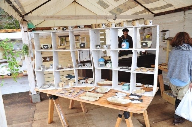 笠間焼、木工製品、笠間産の美味しい農産物やご当地グルメなど、笠間の魅力がたくさん詰まったお店が会場内に所狭しと軒をつらねる。