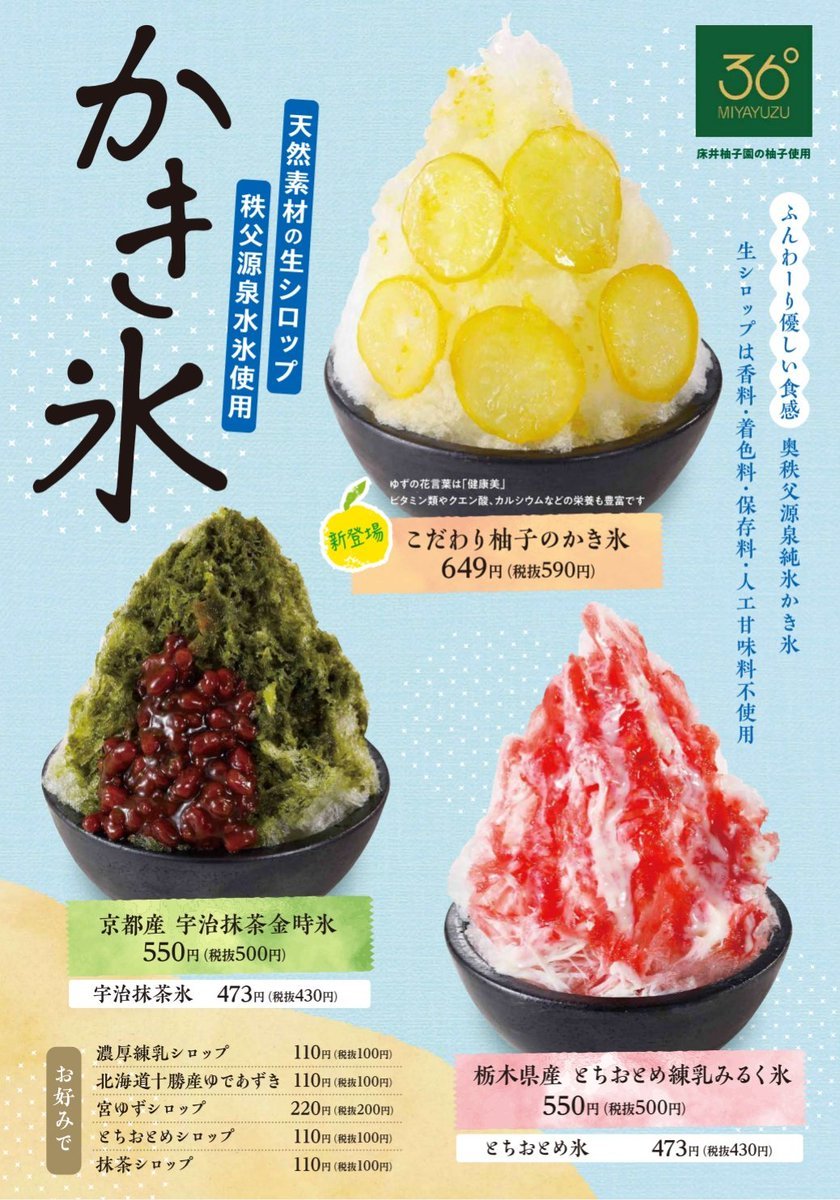 7月1日から期間限定で「天然素材の生シロップかき氷」を販売いたします🍧今年は「こだわり柚子のかき氷」が新登場!宇都宮市床井柚子...