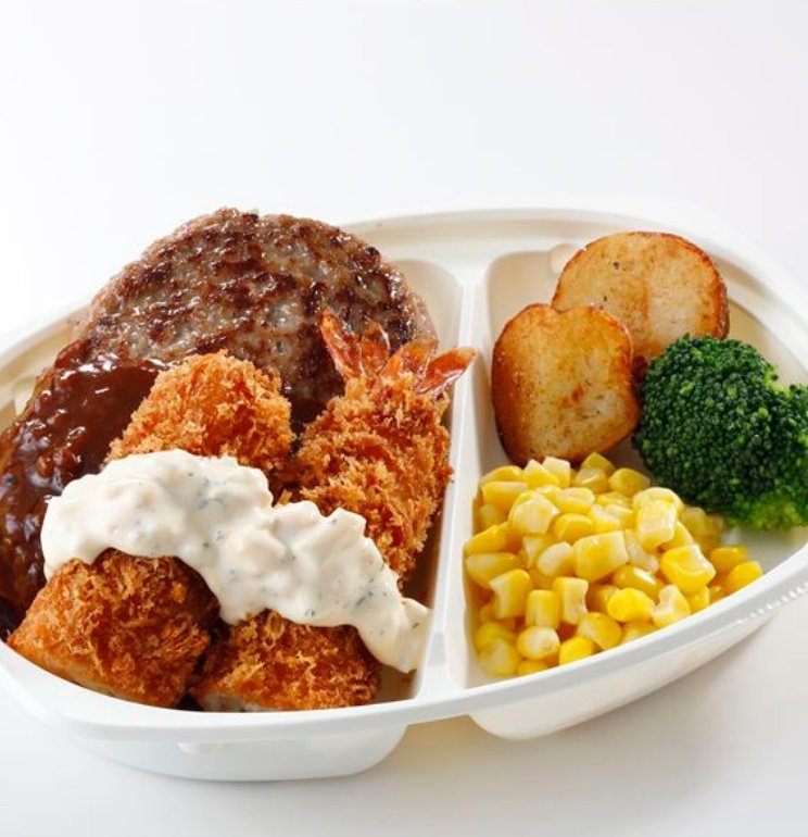 ハンバーグ&大きなエビフライはお弁当にもございます☺